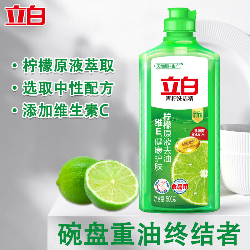 立白洗洁精去油去腥食品级果蔬餐具清洁不伤手 家庭用 青柠精500g*1