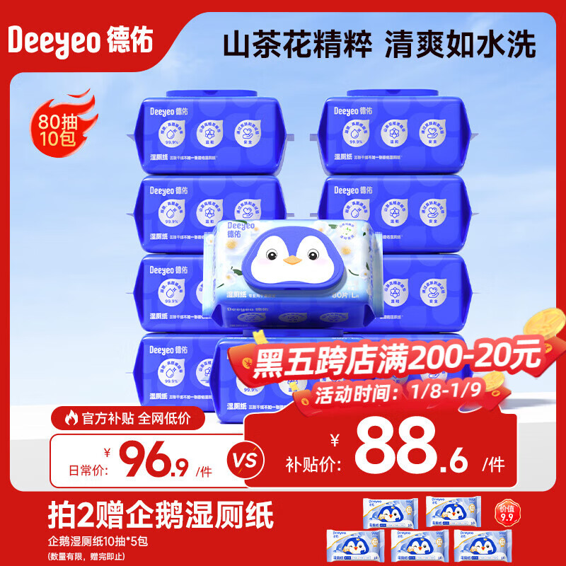 德佑湿厕纸山茶花湿厕纸家庭装80抽厕纸湿巾洁厕如厕湿纸巾温和无刺激 【王牌热卖】山茶花 80抽*10包