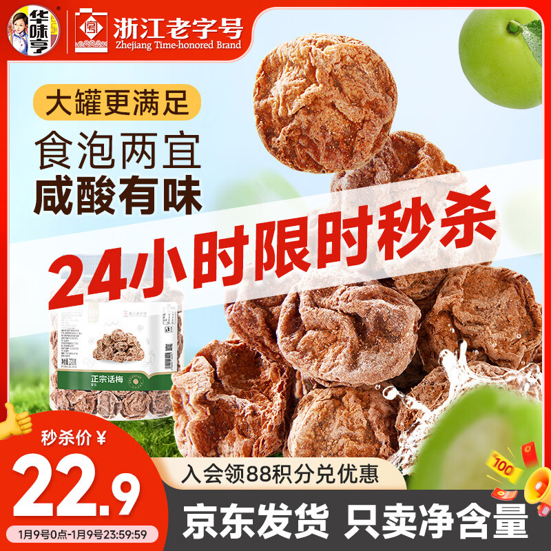 华味亨正宗话梅270g/罐酸甜咸梅蜜饯果干果脯休闲办公室零食泡水解腻
