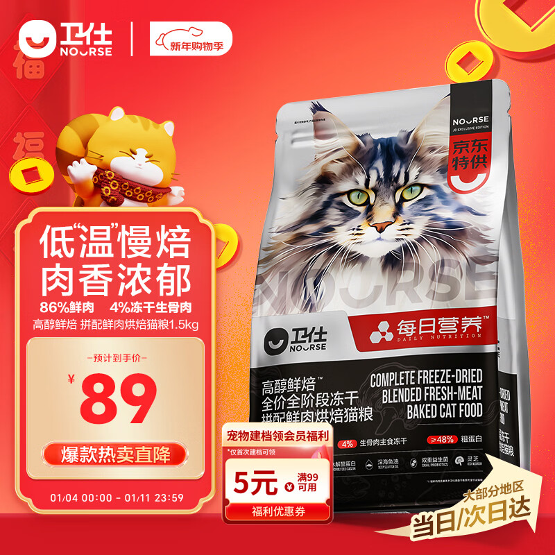 卫仕高醇鲜焙 美毛猫干粮 成猫幼猫全阶段冻干拼配鲜肉烘焙猫粮1.5kg