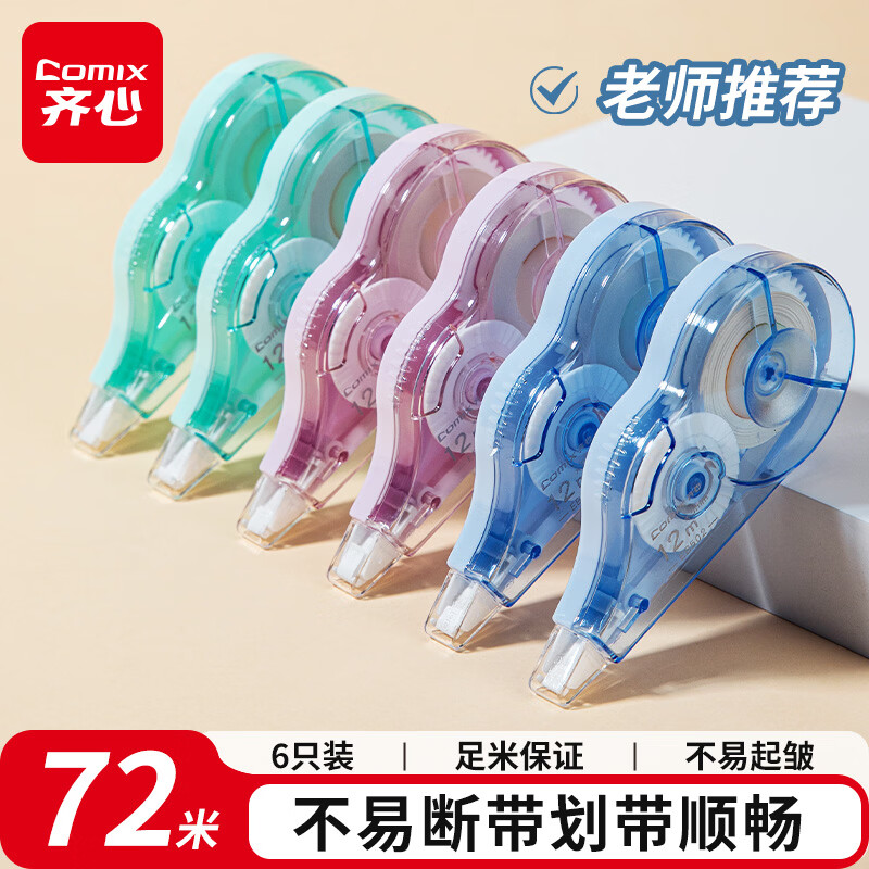 齐心(COMIX)72m修正带6只装 学生涂改带修改带 高颜值改正带修正带小学生专用文具EB502
