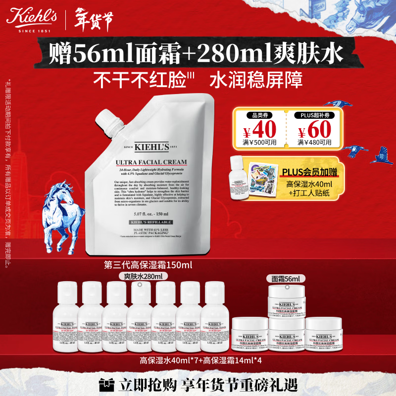 科颜氏(Kiehl's)高保湿霜150ml补充装保湿乳液护肤品礼盒 生日礼物