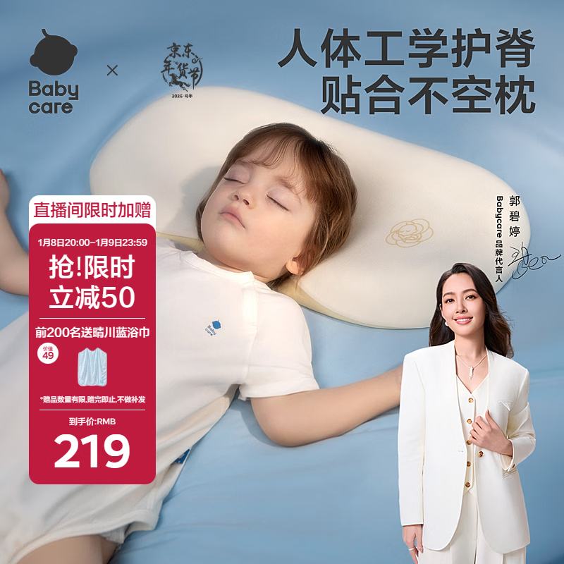 babycare儿童透气硅胶枕婴幼儿护颈枕可水洗硅胶枕芯1-3岁山茶米55×30CM