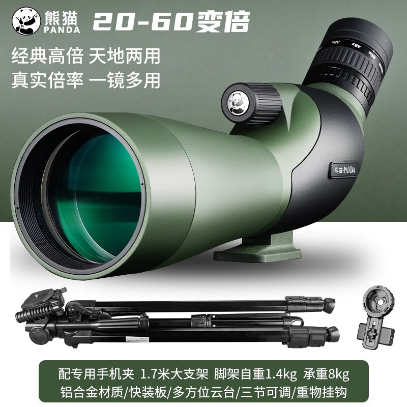 熊猫(PANDA)观鸟镜单筒大口径望远镜20-60无极变倍微光夜视高倍高清观靶观景 20-60×70变倍单筒+1.7M支架高配-高承重