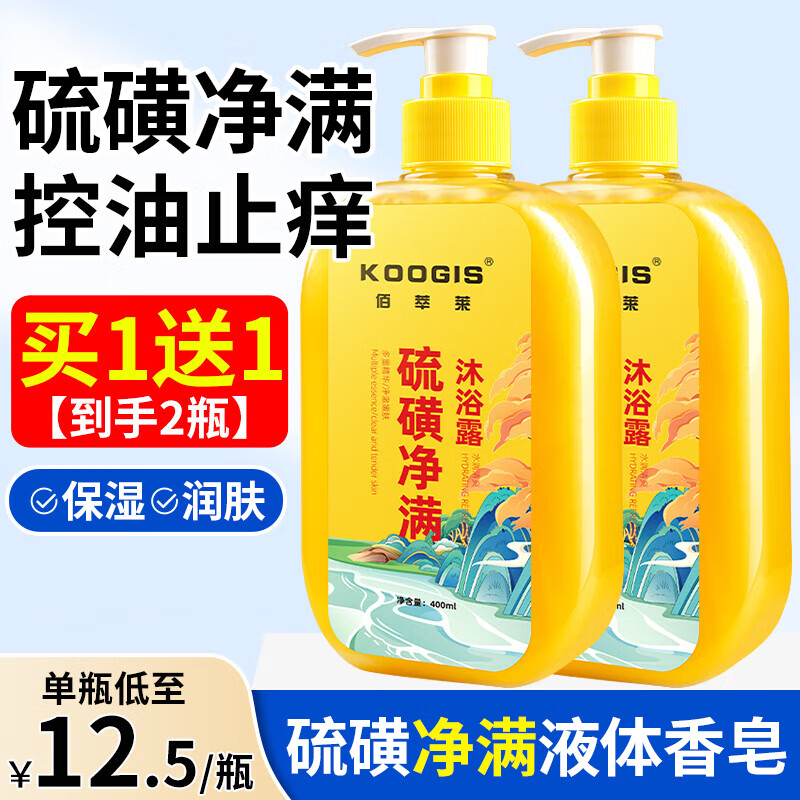 佰萃莱硫磺液体香皂硫磺净满沐浴露螨虫止痒流黄洗头洗脸洗澡三合一2瓶