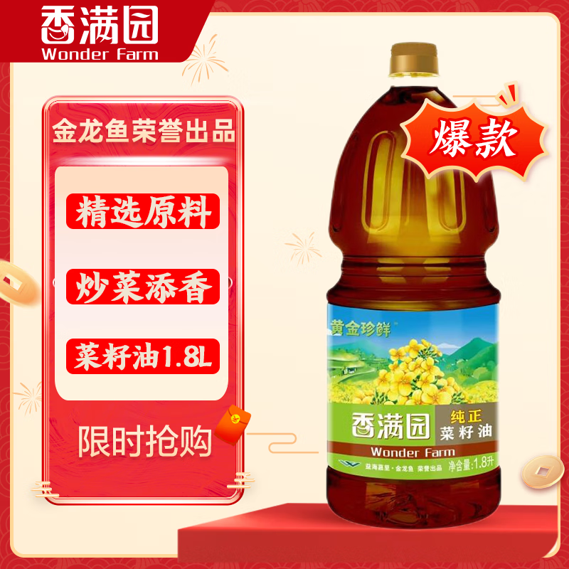 香满园食用油 纯正菜籽油1.8L 家用商用 金龙鱼荣誉出品