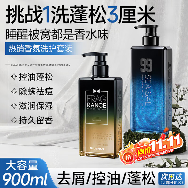 尊蓝男士洗发水沐浴露套装去屑止痒除螨控油持久留香洗头膏沐浴液