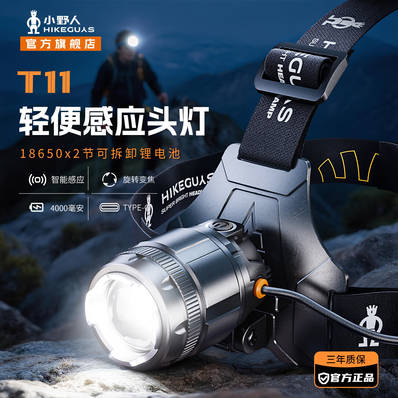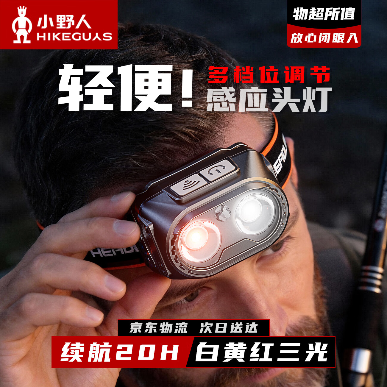 小野人轻便头灯强光超长续航户外夜钓鱼登山徒步超亮工地小型赶海感应灯