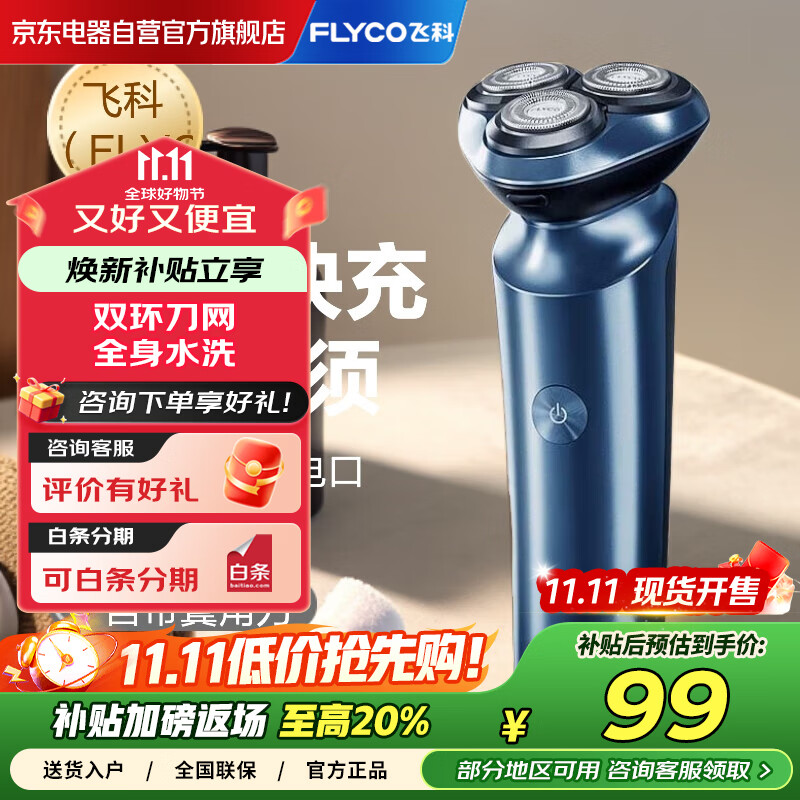 飞科(FLYCO)剃须刀电动刮胡刀剃胡刀 男士便携三刀头剃须刀刮胡子 生日礼物男 送男友 送父亲 FS923