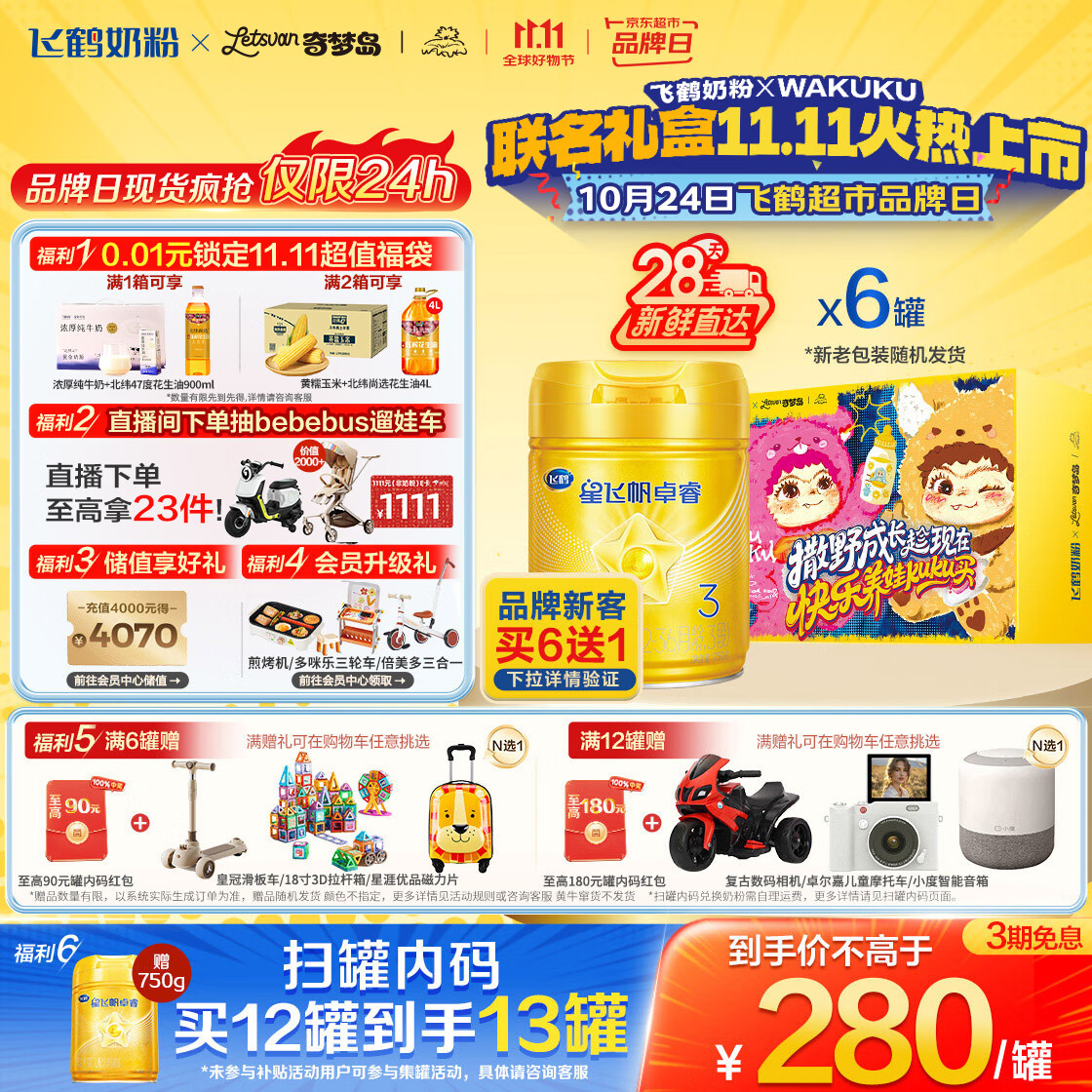 飞鹤星飞帆卓睿婴幼儿配方奶粉2段(6-12月)750g*6 乳铁蛋白