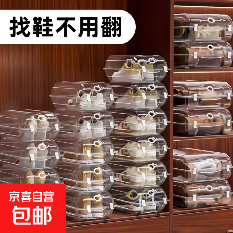 透明靴子鞋盒收纳盒透明鞋盒子鞋柜收纳鞋子架收纳神器省空间 加厚大号10个装-透明白扣