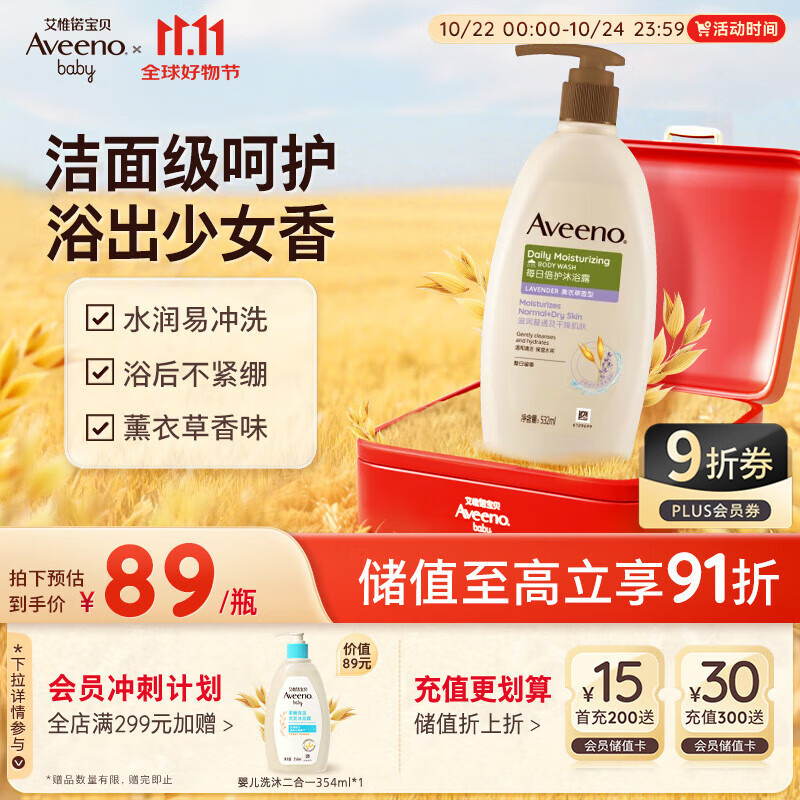 艾惟诺(Aveeno)艾维诺沐浴露温和滋润无皂基补水保湿燕麦(薰衣草香)532ml