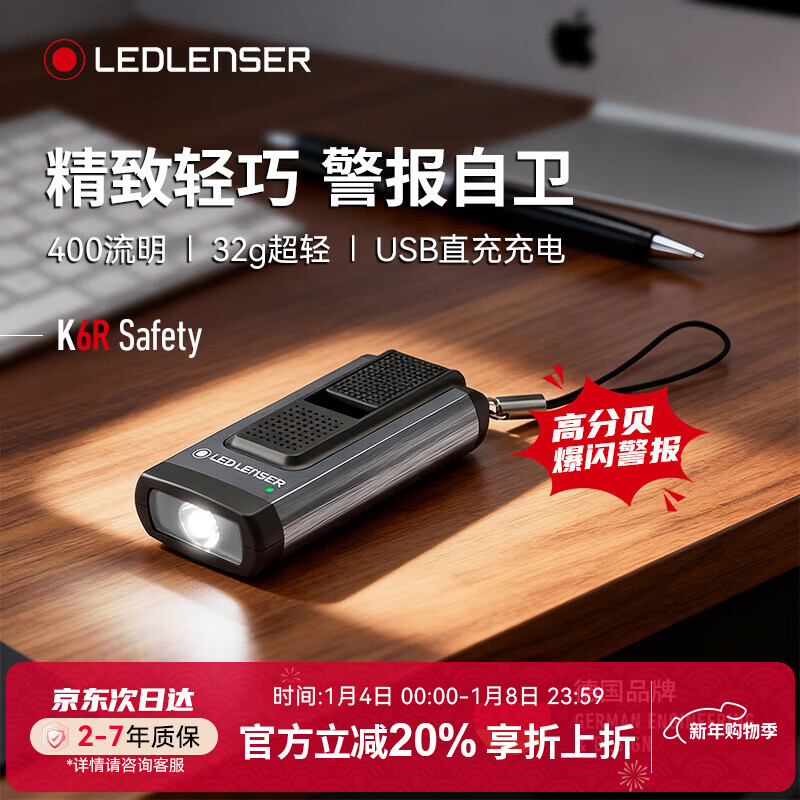 莱德雷神(LED LENSER)小型迷你手电筒K6R高颜值便携钥匙扣手电独居防身报警警报器闪烁
