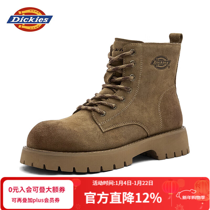 Dickies户外高帮沙漠靴男女同款厚底增高复古休闲马丁靴 棕色 40