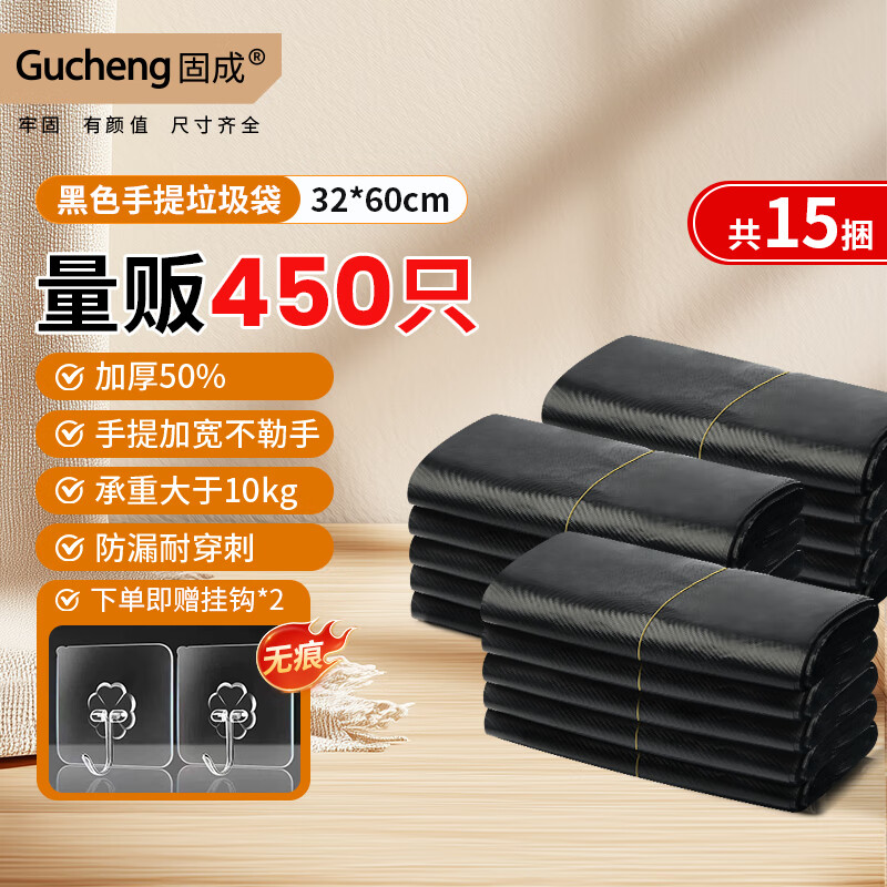固成背心垃圾袋黑色32*60cm450只单面1.5丝 手提垃圾袋加厚黑色塑料袋