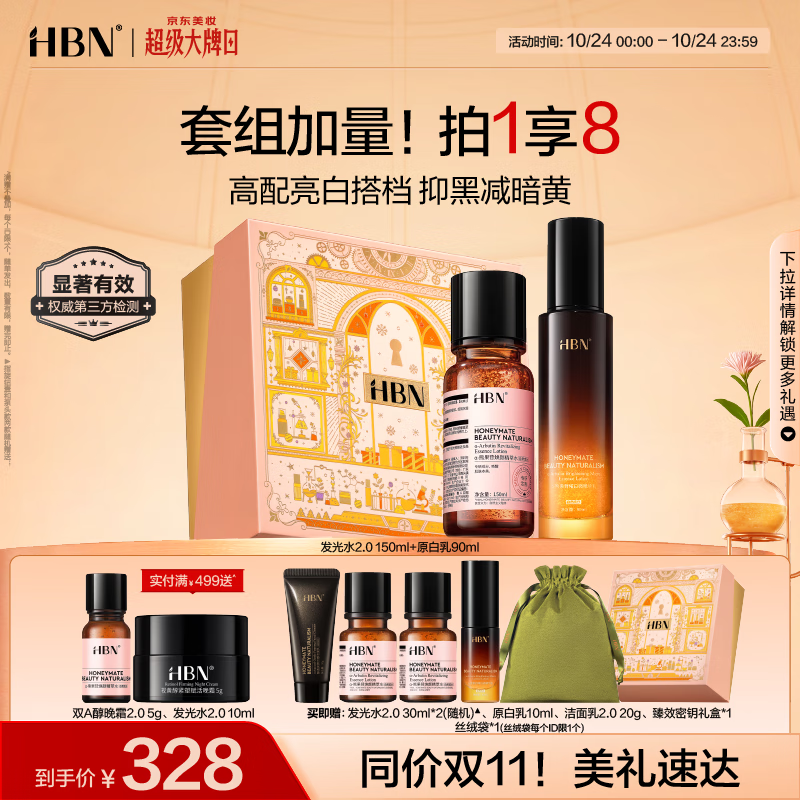 HBN【双11抢先购】水乳套装美白提拉焕亮紧致补水保湿护肤品送礼