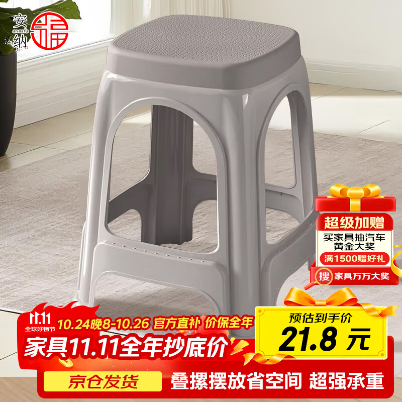安纳福 塑料凳家用小板凳换鞋凳子宝宝餐椅学习椅靠背椅子HK5178灰色