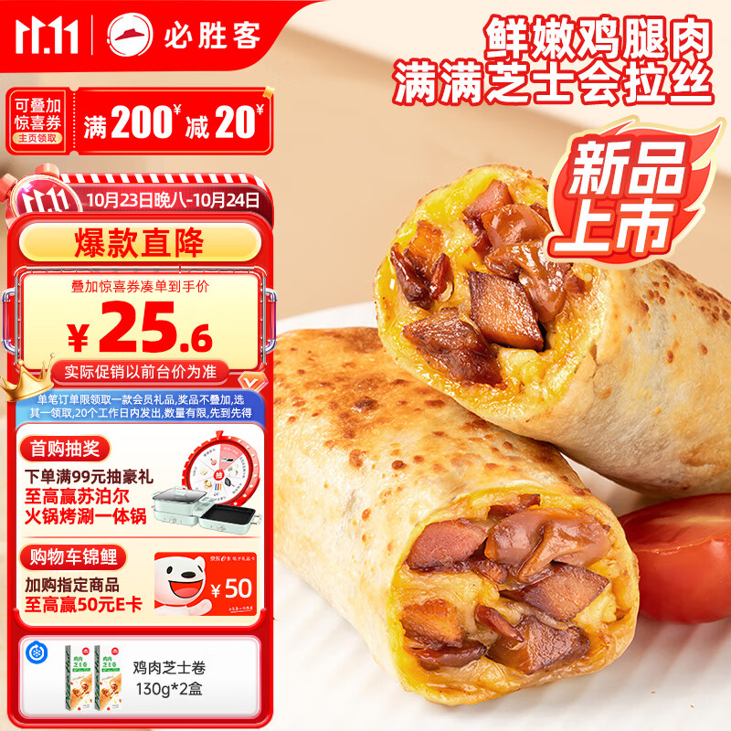 必胜客必胜优选鸡肉芝士卷130g*2盒 儿童早餐半成品速食 空气炸锅食材