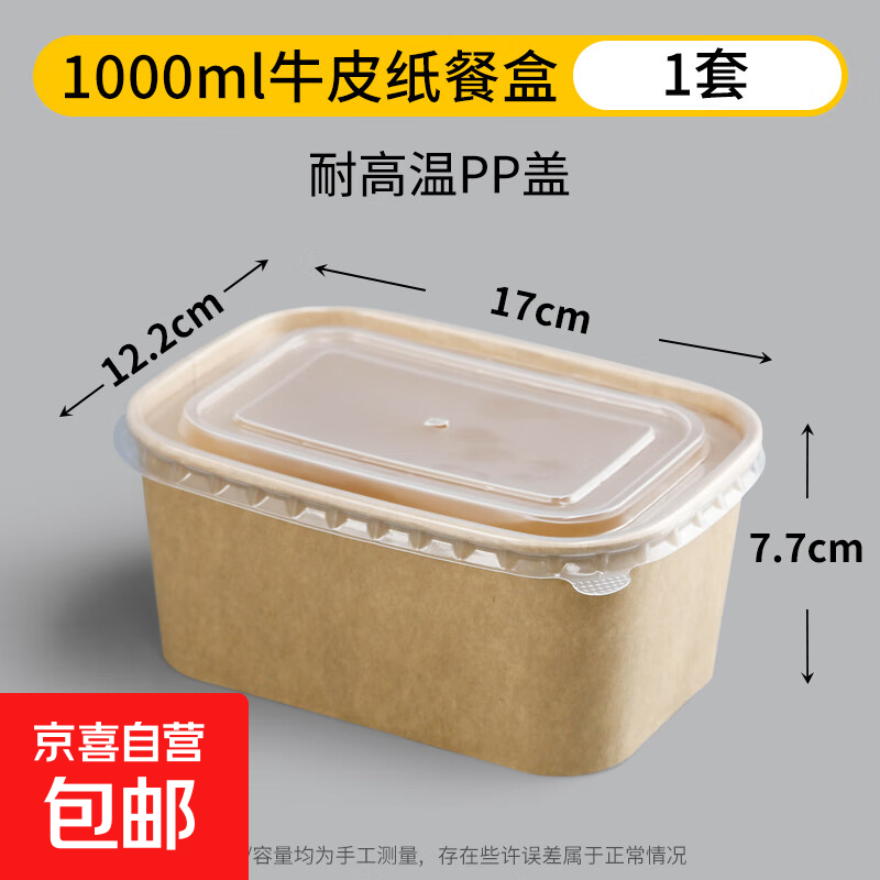 牛皮纸餐盒可微波炉加热盒子一次性饭盒打包盒带盖饭碗野餐 1000ml+盖10个