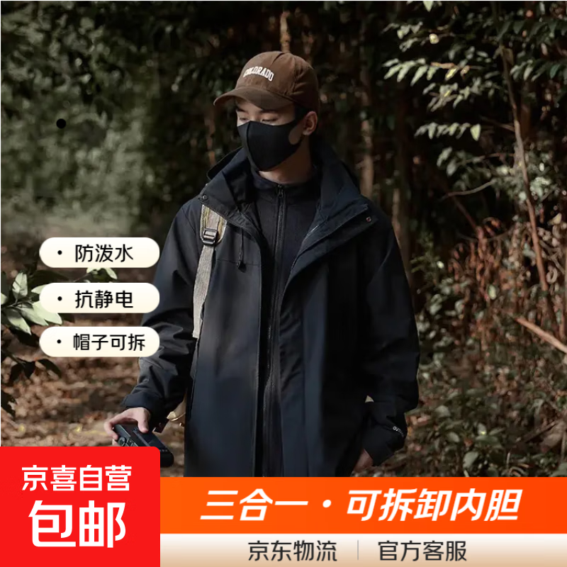 【硬核防风】oversize宽松冲锋衣男女秋冬三合一两件套可拆防水 黑色【三合一/可拆卸内胆】 L 建议男 145-160斤女145-160斤