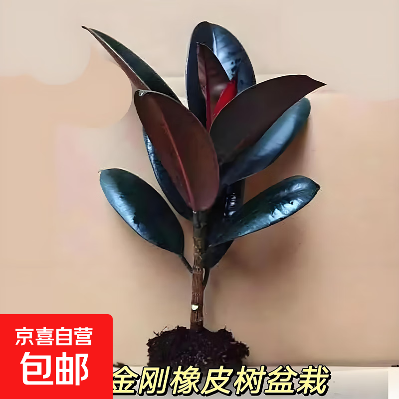 橡皮树黑金刚盆栽花盆苗客厅室内绿叶大叶四季常青型植物净化空气 15公分高3棵 不含盆