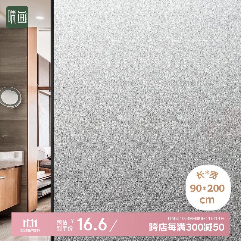 晴画 磨砂玻璃贴膜卫生间窗户防窥膜玻璃贴纸透光不透人窗花 90*200cm