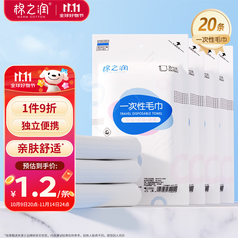 棉之润一次性毛巾【20条】便携装加厚加大旅行装洗脸巾加大号旅游用品
