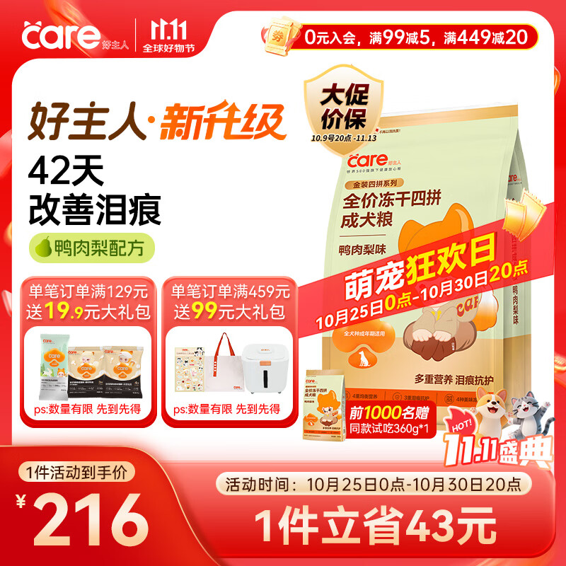 好主人新品狗粮鸭肉梨冻干四拼成犬粮对抗泪痕通用成犬粮10kg【囤货装】