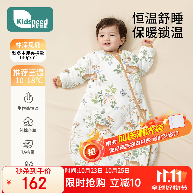 柯斯德尼(kidsneed)婴儿睡袋秋冬恒温中厚夹棉宝宝睡袋婴幼儿睡衣儿童防踢被包腿M码