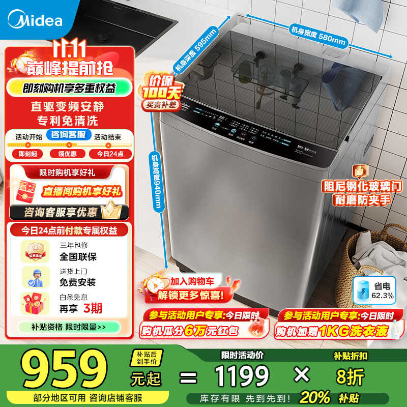 美的(Midea)波轮洗衣机全自动12公斤大容量除螨洗专利免清洗快净科技 一级能效 以旧换新 家电国家补贴20% 变频升级款MB120L3D