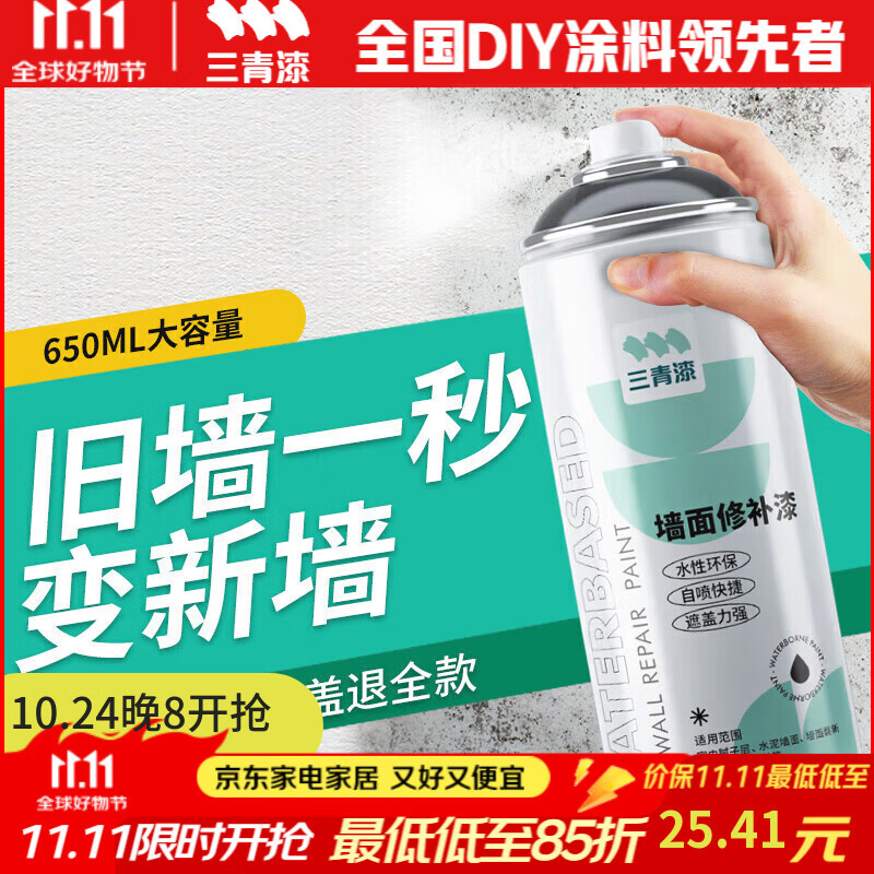 三青 墙面修复自喷漆乳胶漆修补膏室内翻新白墙面去污修复 白色650ml
