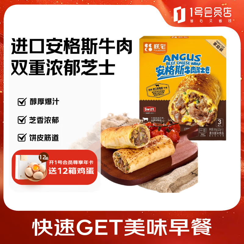 朕宅 安格斯牛肉芝士卷 120g*3 早餐山姆半成品微波加热即食方便速食