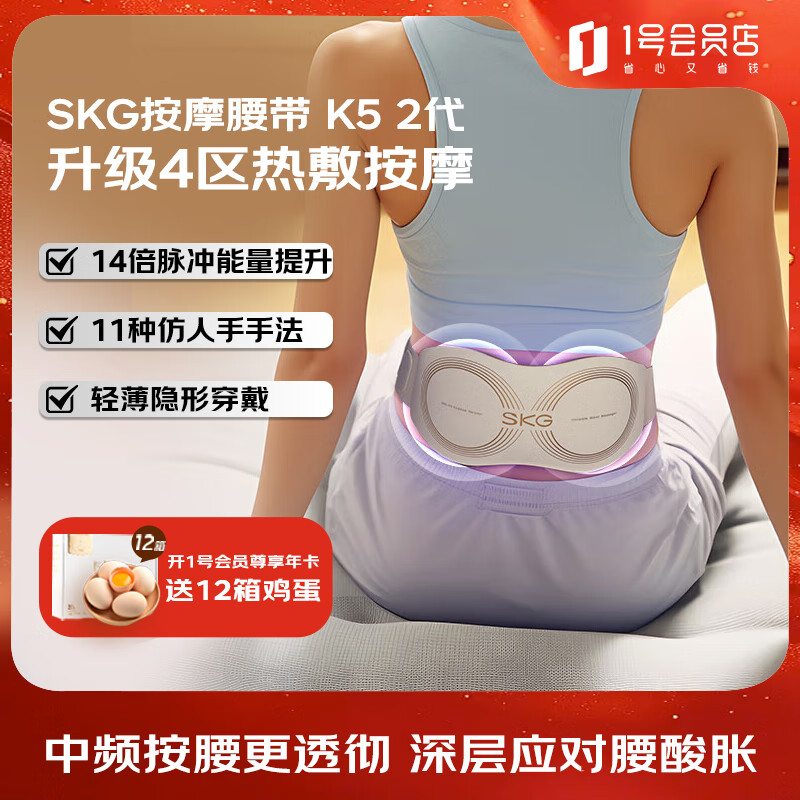 SKG 腰部按摩器隐形按摩腰带四区热敷按摩仪 父亲节礼物实用礼物送男女朋友老婆父母 K5二代