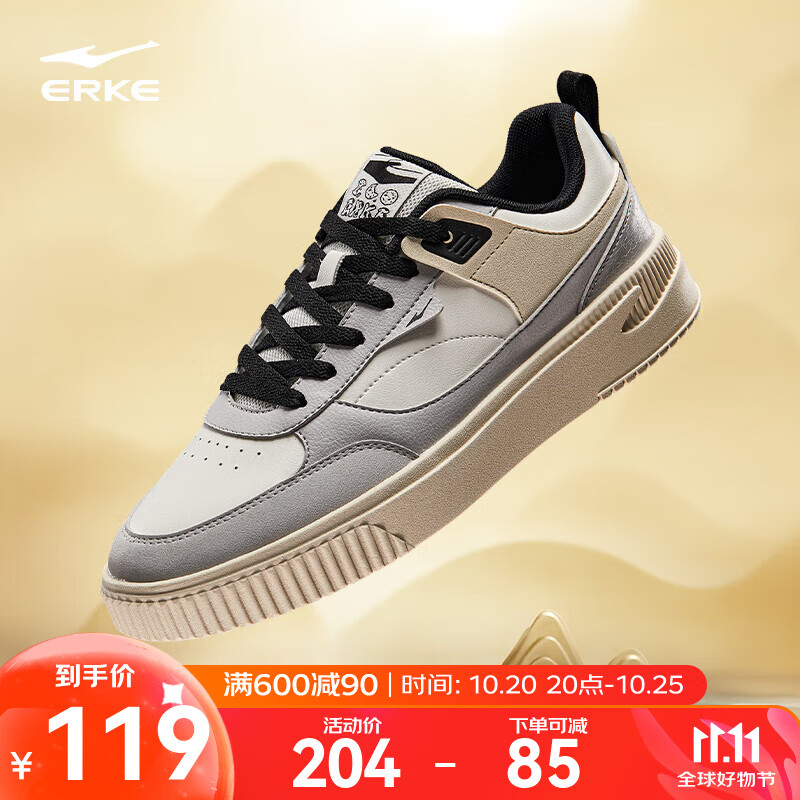 鸿星尔克板鞋男2025秋冬季新款滑板鞋经典闪耀复古休闲鞋男轻便运动鞋子男 微晶白/云雾灰 42