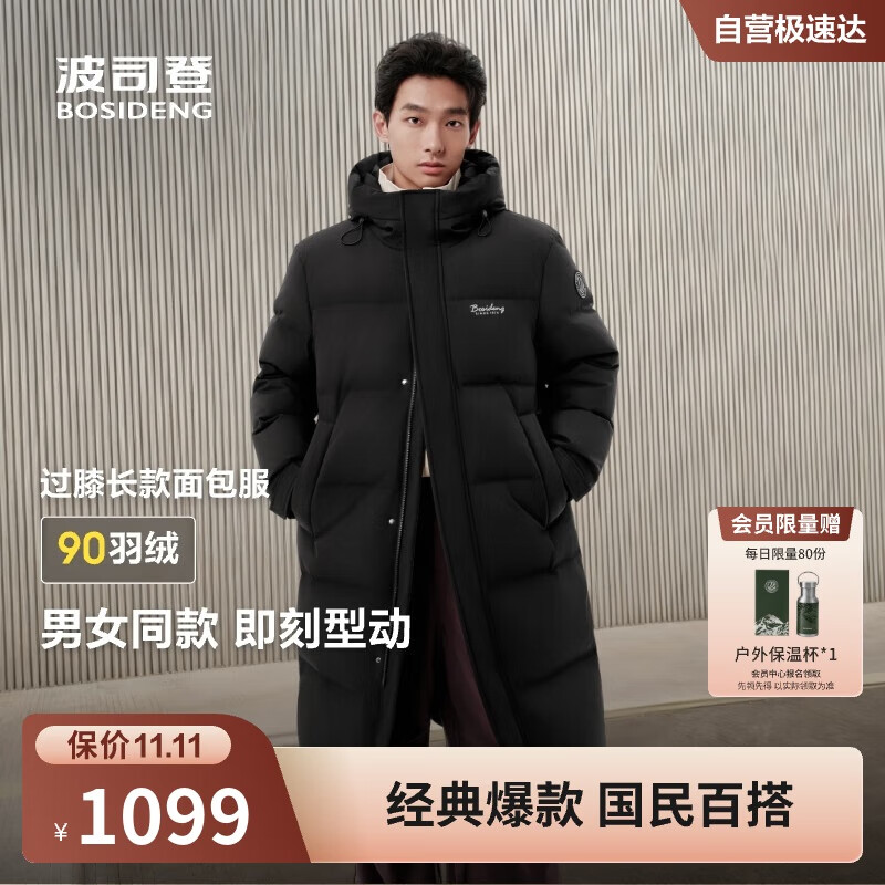 波司登25年冬季羽绒服男女情侣同款宽松超长款休闲加厚连帽外套