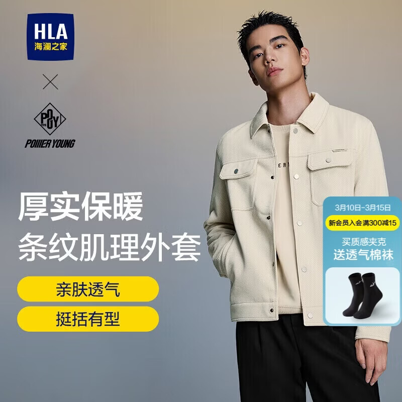 HLA海澜之家牛仔裤男冬山不在高系列磨毛加厚直筒裤子男新年