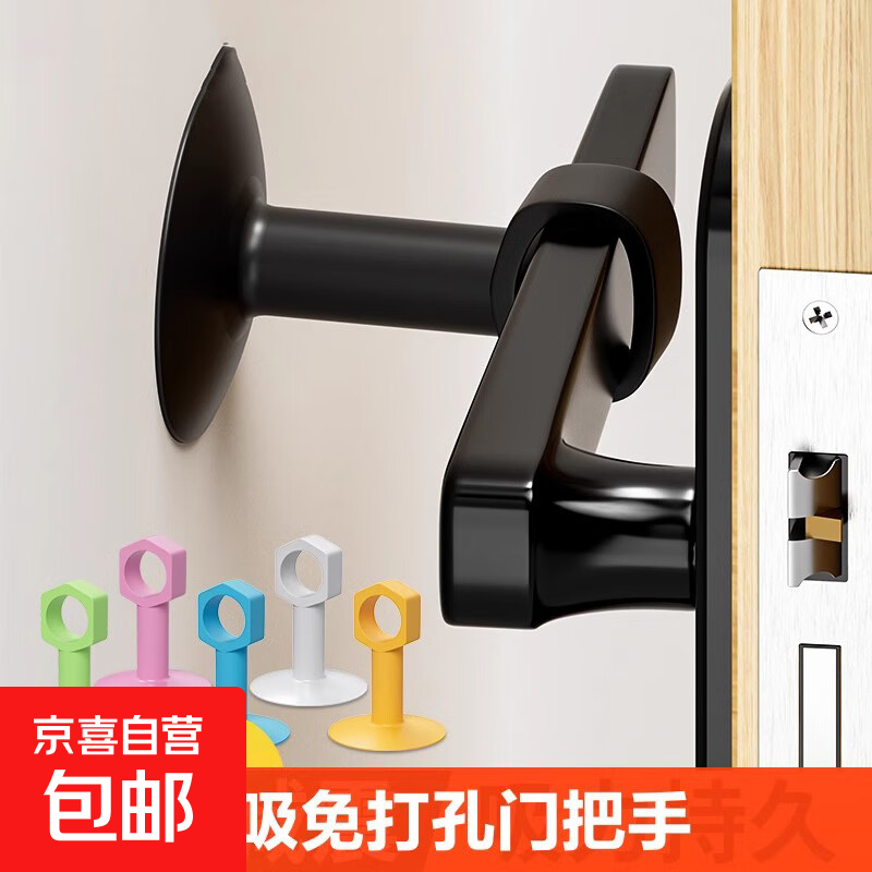儿童硅胶门吸免打孔门把手门后防撞垫婴童阻挡器 六角门吸-大号黑色5个装