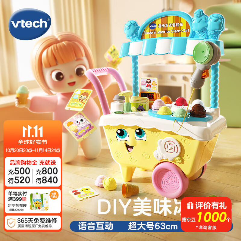 伟易达(Vtech)儿童玩具过家家趣味双语雪糕车仿真冰淇淋车2岁+男孩女孩生日礼物 趣味双语雪糕车 黄色【2岁+】