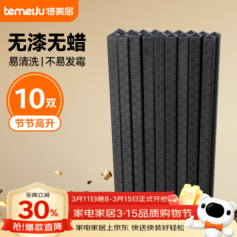 特美居消毒机专用 耐高温酒店餐厅筷 无漆无蜡家用防滑防霉24cm合金筷子