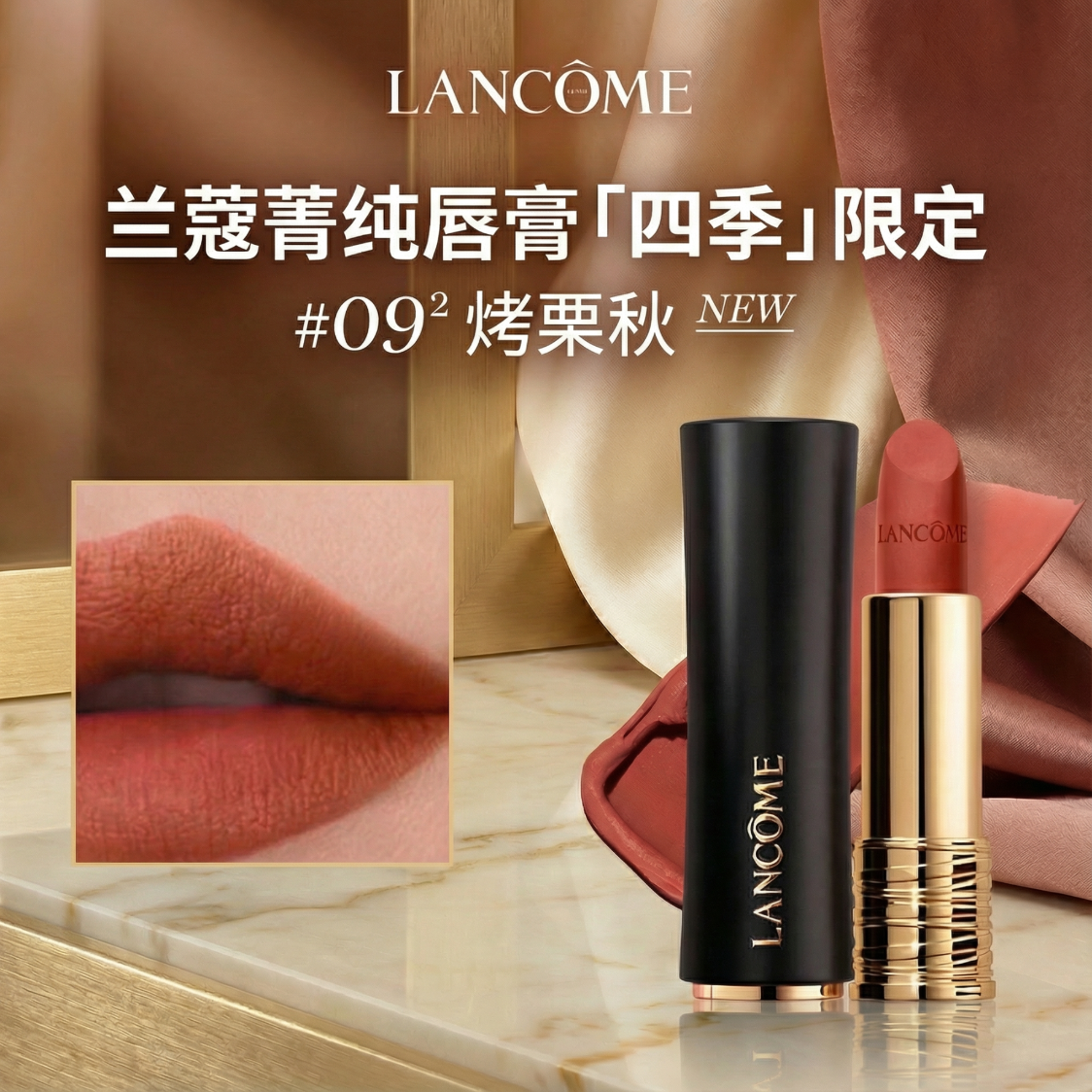 兰蔻全新菁纯丝绒雾面唇膏09#烤栗秋 3.4g 持久显白