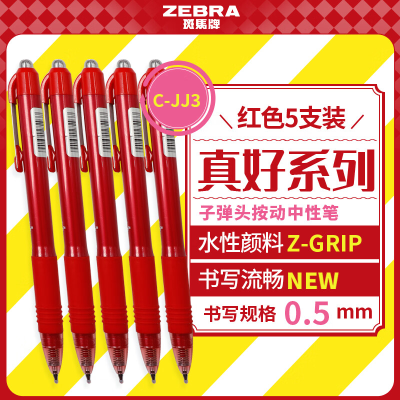 斑马牌(ZEBRA)子弹头中性笔0.5mm 真好系列 老师批改学生笔记标注签字笔 C-JJ3 红色 5支装