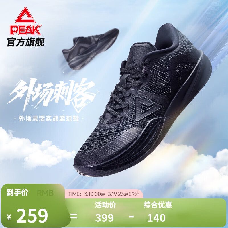 匹克态极外场刺客篮球鞋男款春季新款低帮实战球鞋透气耐磨运动鞋 全黑 44