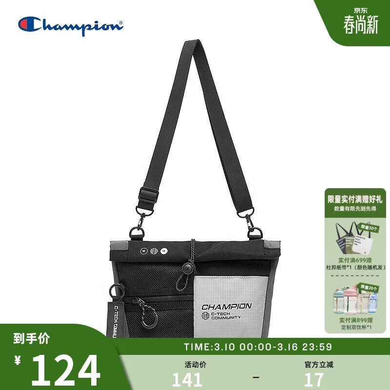 Champion冠军斜挎包25秋季新款男多口袋机能单肩包轻便女小方包 深灰 均码