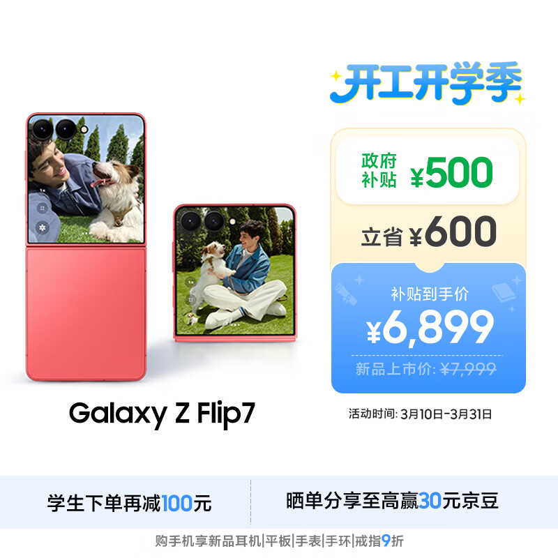 三星Samsung Galaxy Z Flip7 折叠屏手机 4.1英寸超大智能外屏 5000万像素 AI手机12GB+256GB 珊瑚红