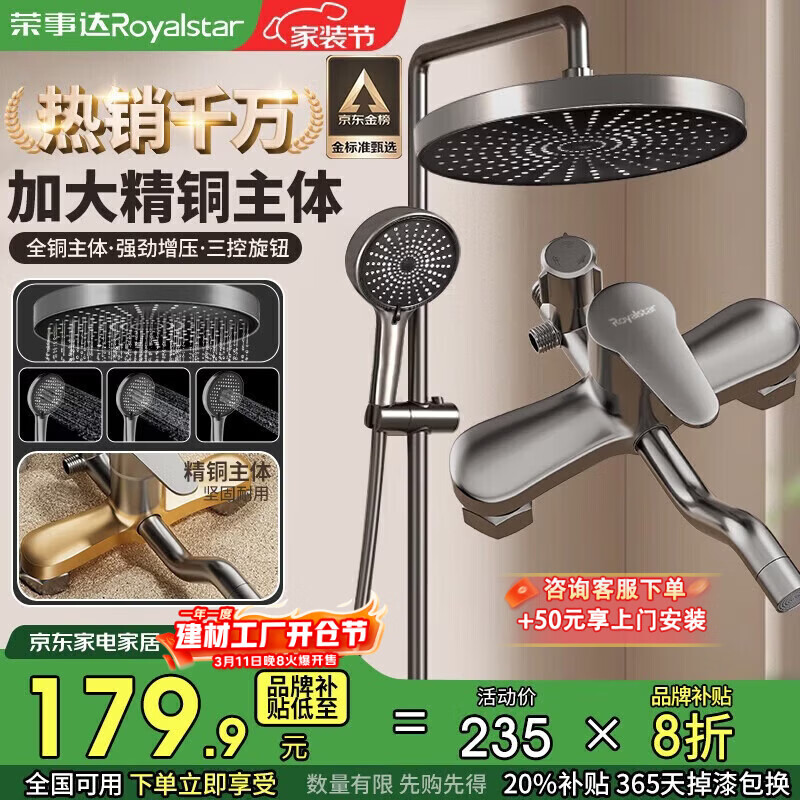 荣事达淋浴花洒套装精铜卫浴室家用一体花洒洗澡喷头增压淋浴器全套Y1