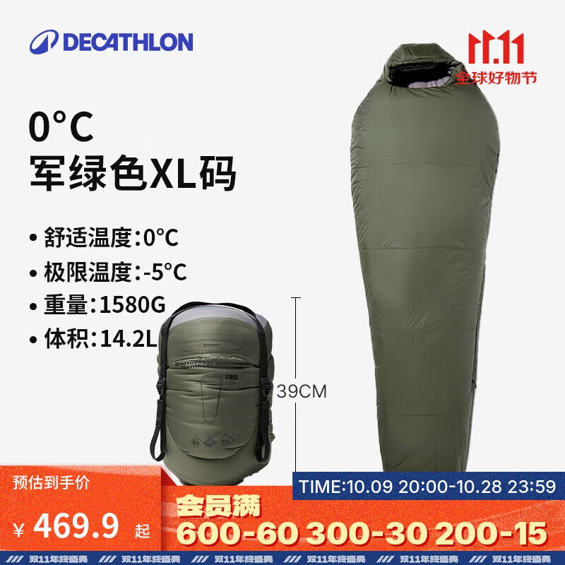 迪卡侬(DECATHLON)睡袋木乃伊MT500带帽露营保暖学生办公室午休午睡徒步0°C4844300