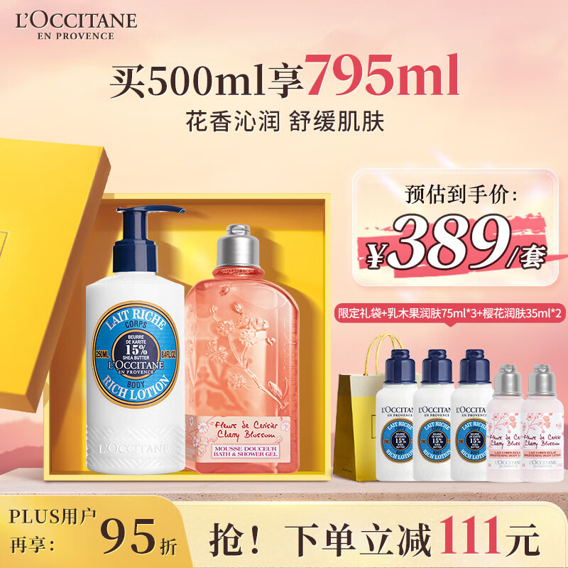 欧舒丹经典洗护套装(沐浴露+身体乳)各250m生日礼物随机发货
