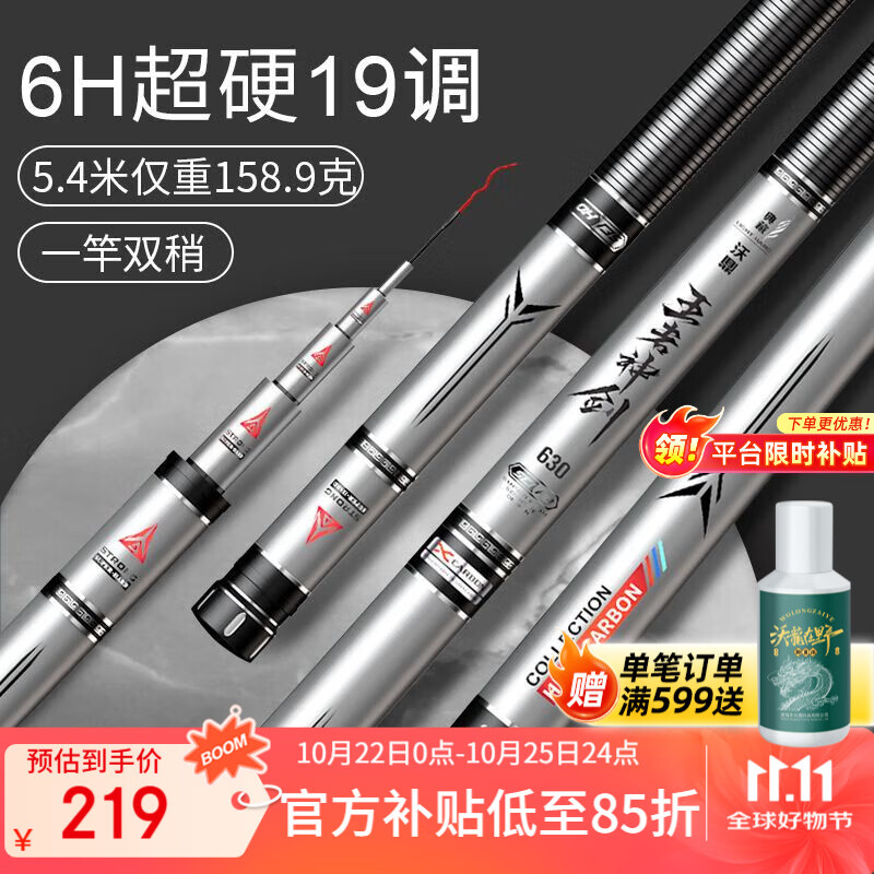 沃鼎王者神剑鱼竿手竿超轻超硬十大黑坑品牌19调台钓竿 6h5.4米