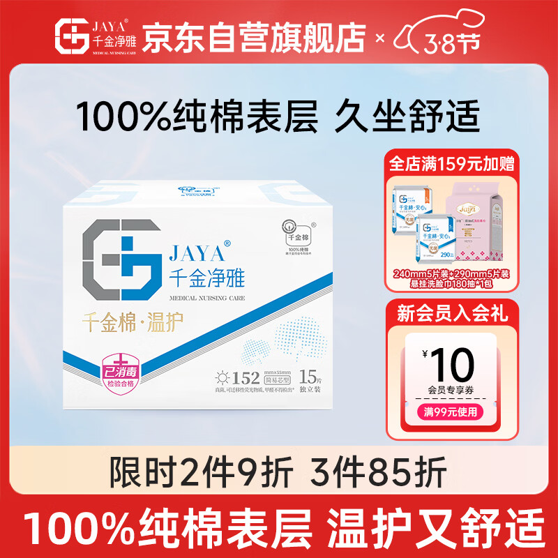 千金净雅温护盒装纯棉超薄透气迷你护垫卫生巾152mm*15片*1盒京东自营消毒