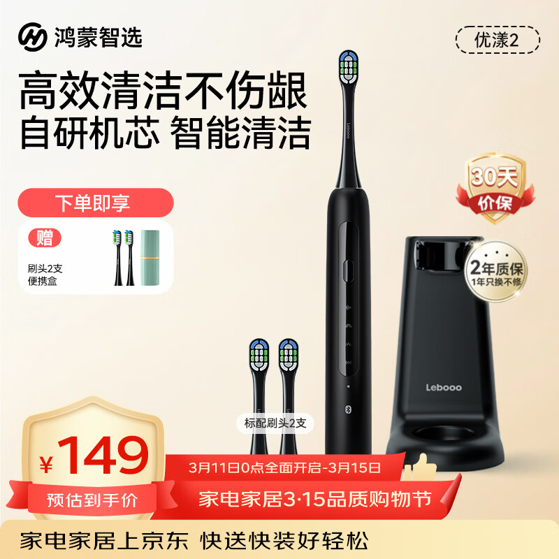 鸿蒙智选力博得电动牙刷智能声波牙刷优漾2 长续航全自动成人学生款情侣送男友送女友生日礼物星夜黑